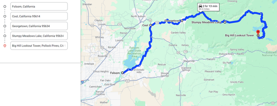 Túra Útvonala / Route: Granite Bay - Auburn - Forest Hill - Georgetown - Placerville -